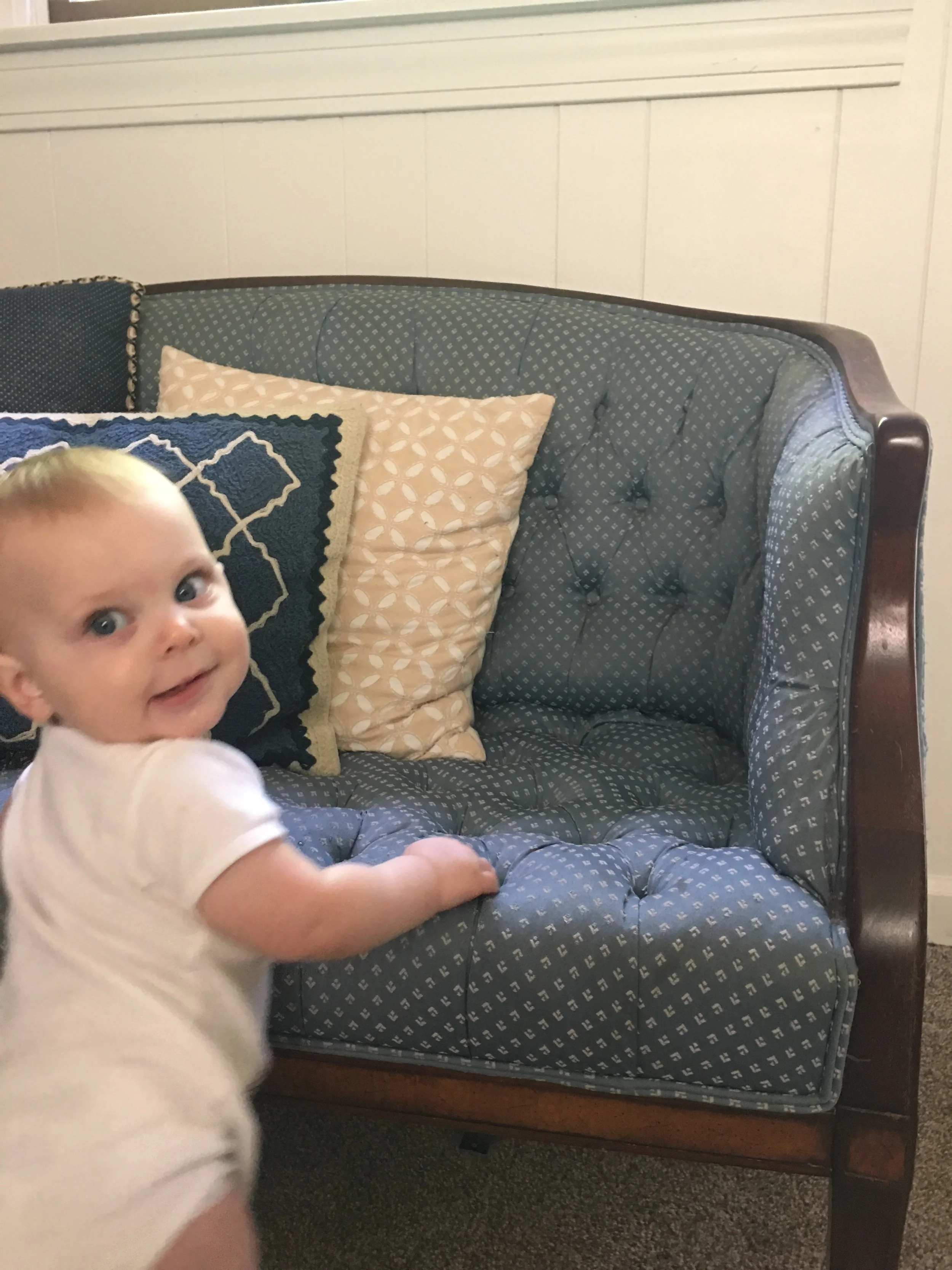 To my dismay, his first word was "Da-da" instead of mama. I tried my hardest to get him to say mama first but, in the end, Daddy won that game. I'm still really happy he's babbling and starting to say words... so dang cute! Pier loves to stand up, but he still can't stand without some help from furniture or mama and daddy. OH! And he started pointing! I am so proud!!! It's pretty hilarious how AMAZING you think your kids are when they start doing things like that....I'm all "My child is sooooo smart look at him point to a ball. Look!!! Did you see it? Don't you think he's smart? He's going to get a perfect score on his SAT one day, trust me."